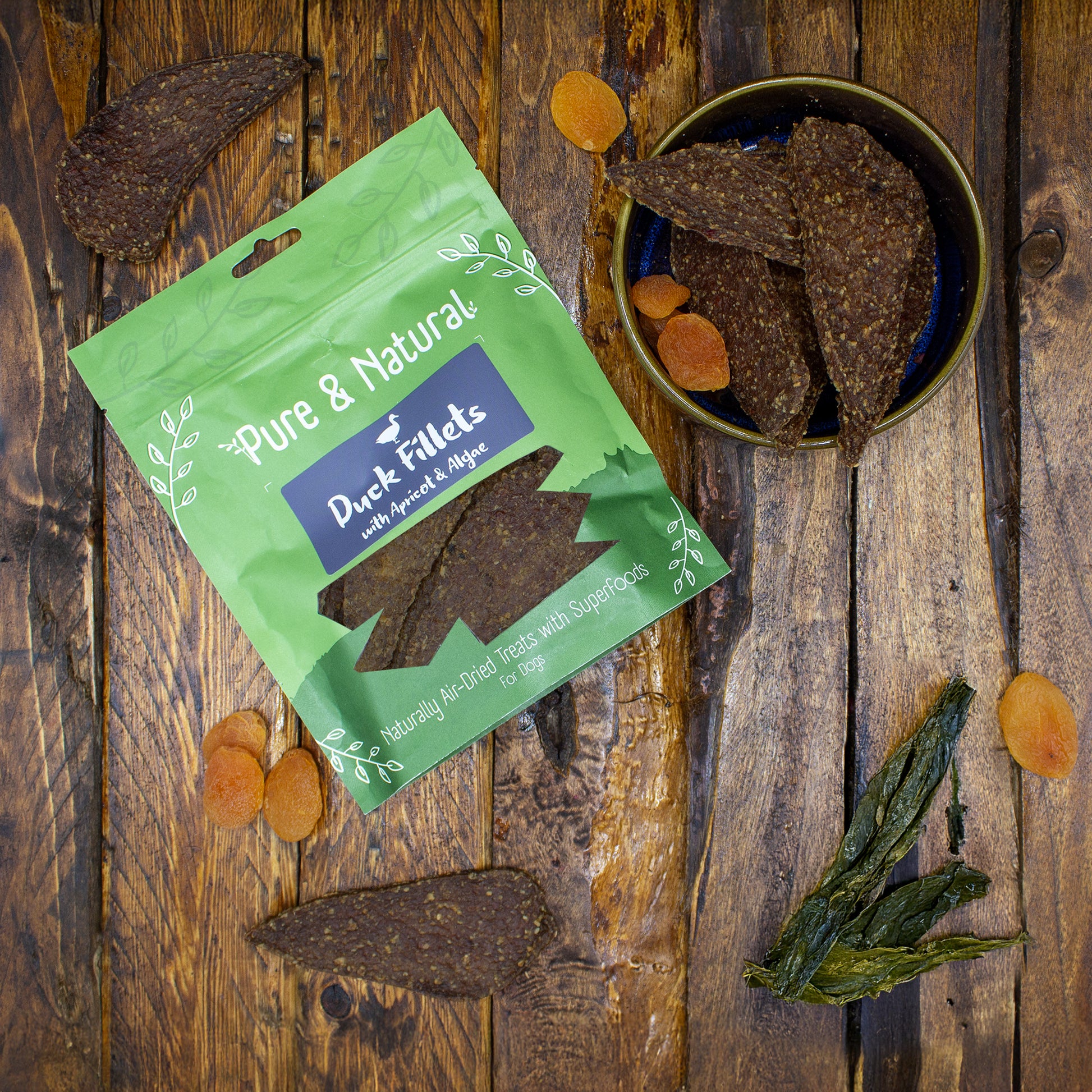 Gentle, single-protein duck fillets slowly air-dried to preserve natural nutrients and rich taste. Made with 90% duck, apricot, and nutrient-dense algae, these treats deliver: