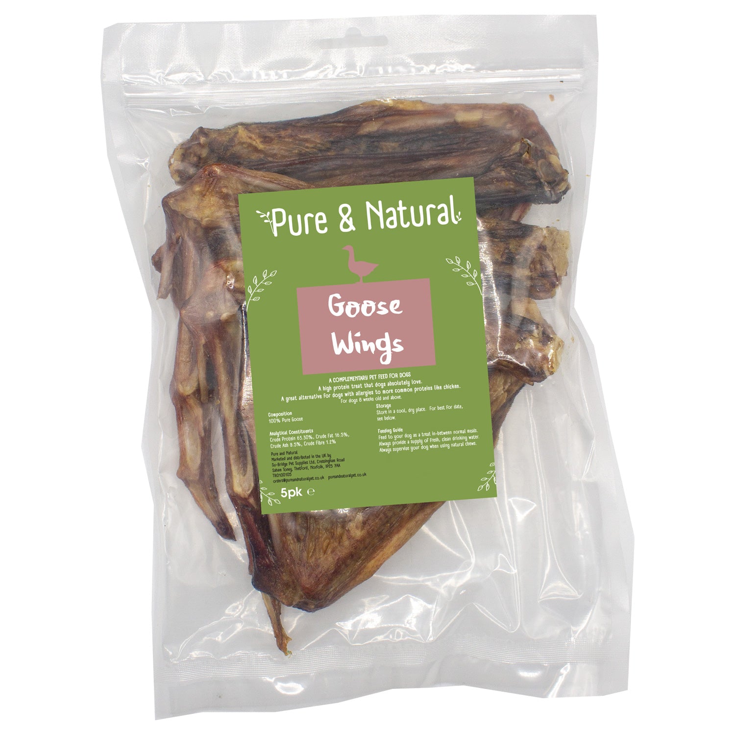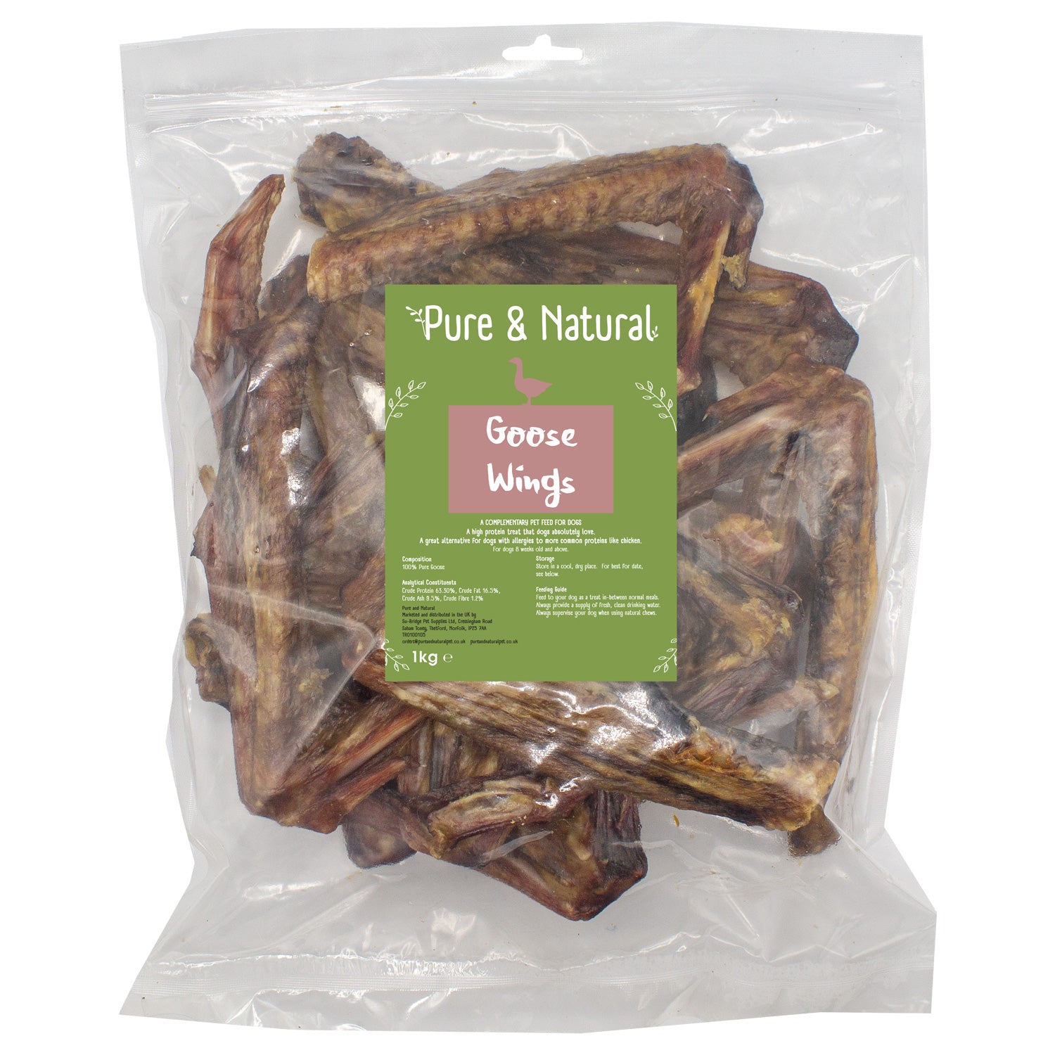 Treat your dog to something special with our 100% natural Goose Wings. Packed with flavour and goodness, these crunchy treats are air-dried to lock in nutrients and provide a satisfying chew. A great source of protein, they support strong muscles and healthy energy levels while also helping to keep teeth clean through natural chewing action.