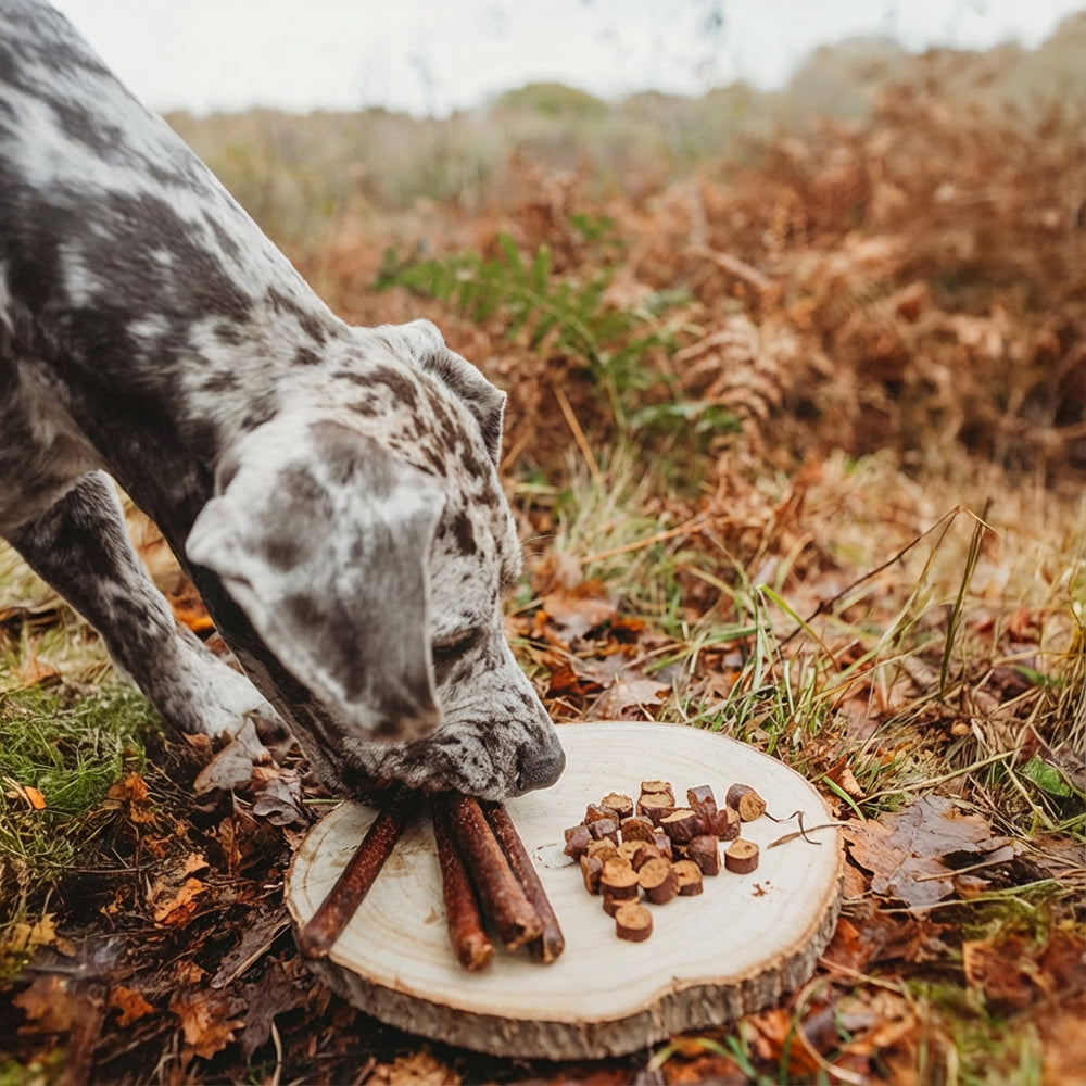 A luxurious treat for dogs who love rich, gamey flavours. These Pheasant & Partridge Gourmet Sausages feature 40% premium pheasant and partridge, blended with chicken for a lean, high-protein snack. Chewy, satisfying, and naturally appealing, they make an indulgent reward or everyday treat.