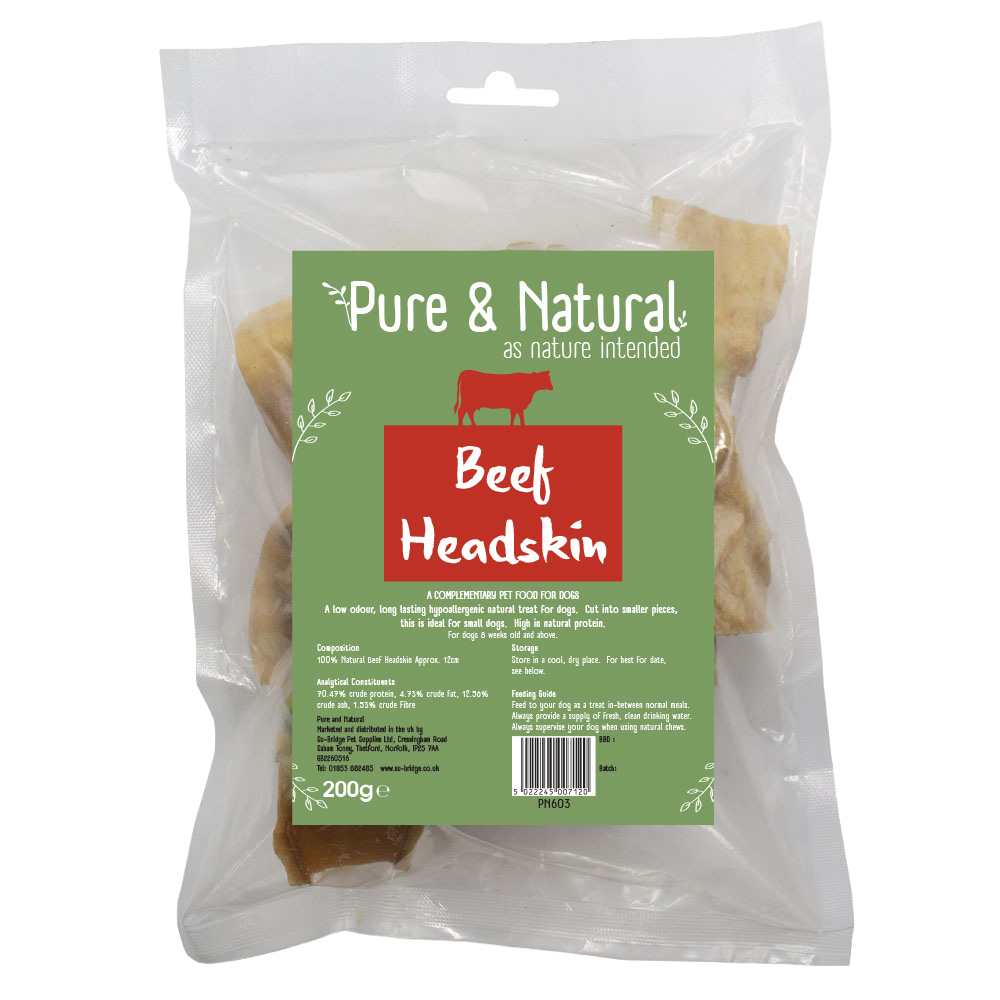 Introducing Pure & Natural Beef Headskin Treats, the ideal snack for your beloved pup! Made from 100% pure and natural beef headskin, these air-dried treats are full of flavor and nutrition, providing your dog with a delicious and healthy snack.