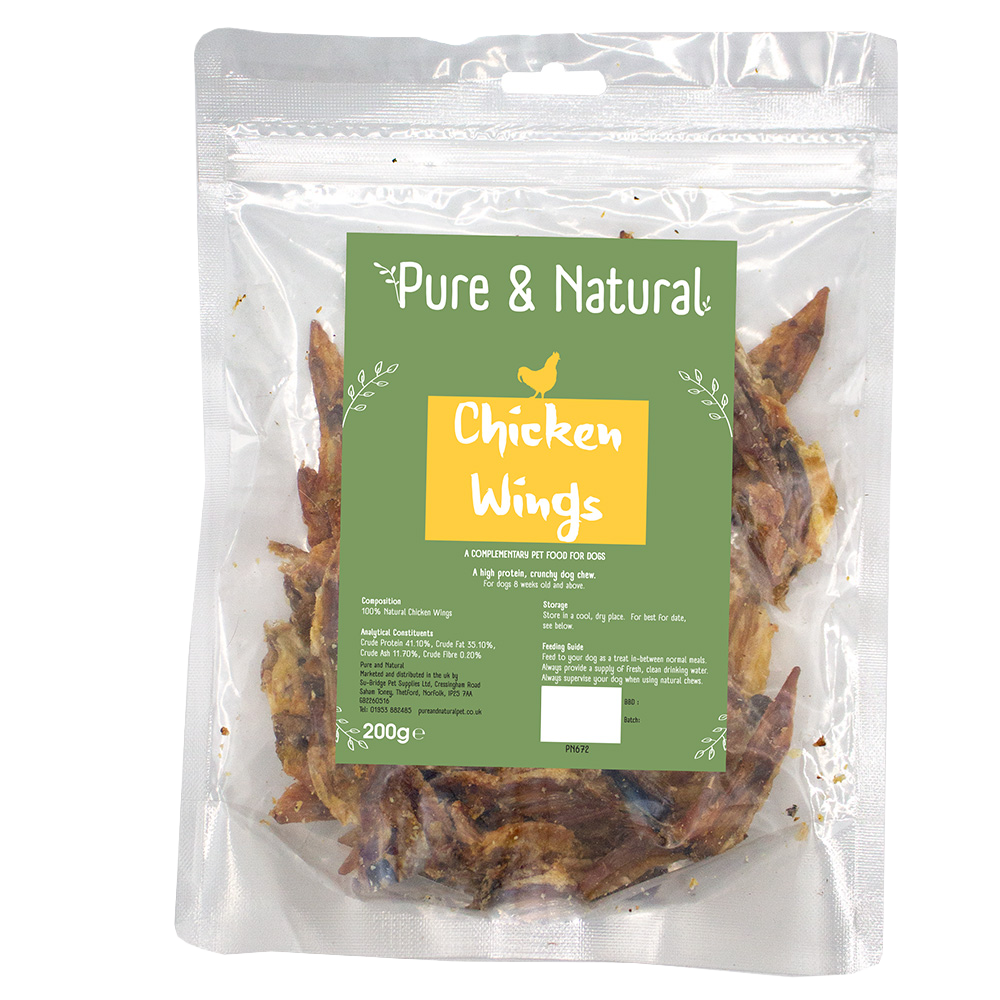 Promotes Dental Health: The crunchy texture of Pure & Natural Chicken Wing Treats helps to scrape away plaque and tartar, promoting healthy teeth and gums for your furry friend.