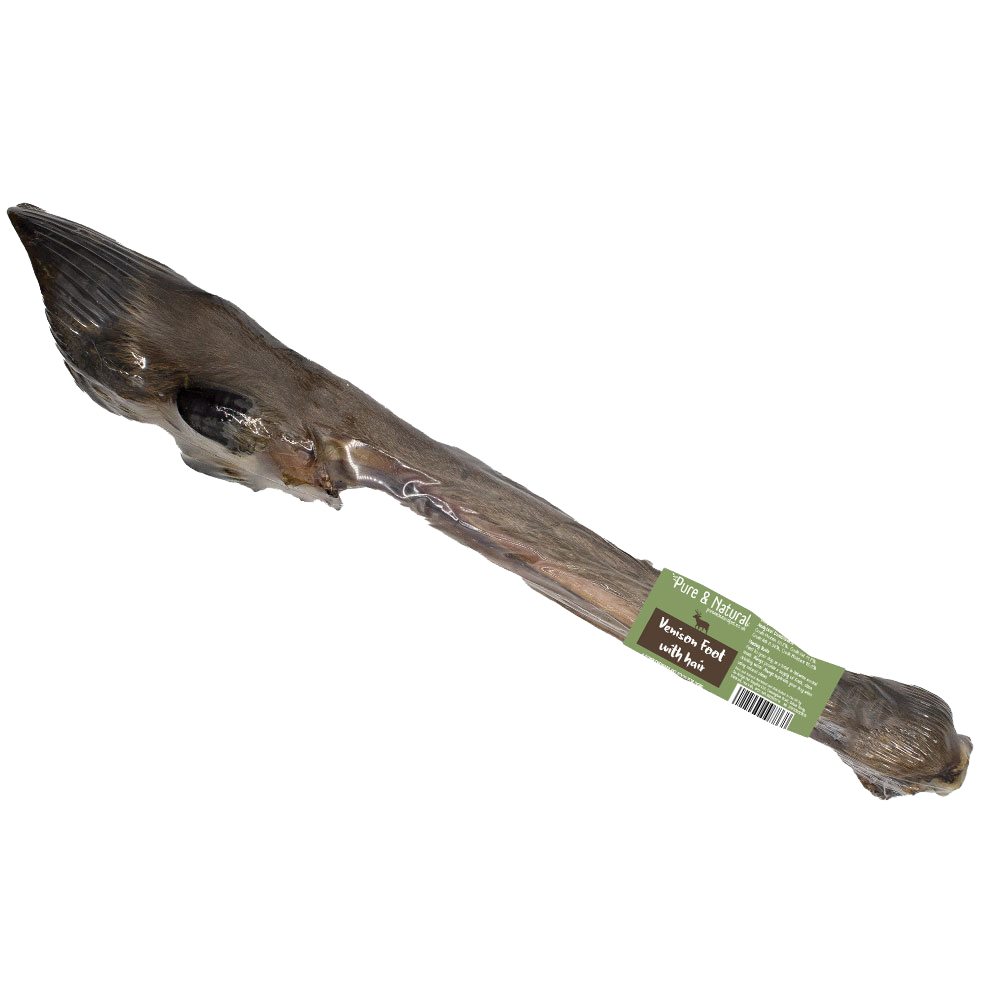 Made from 100% pure and natural deer foot, with no added chemicals or preservatives. The hair on the foot is a natural toothbrush that helps to clean your dog's teeth and gums.